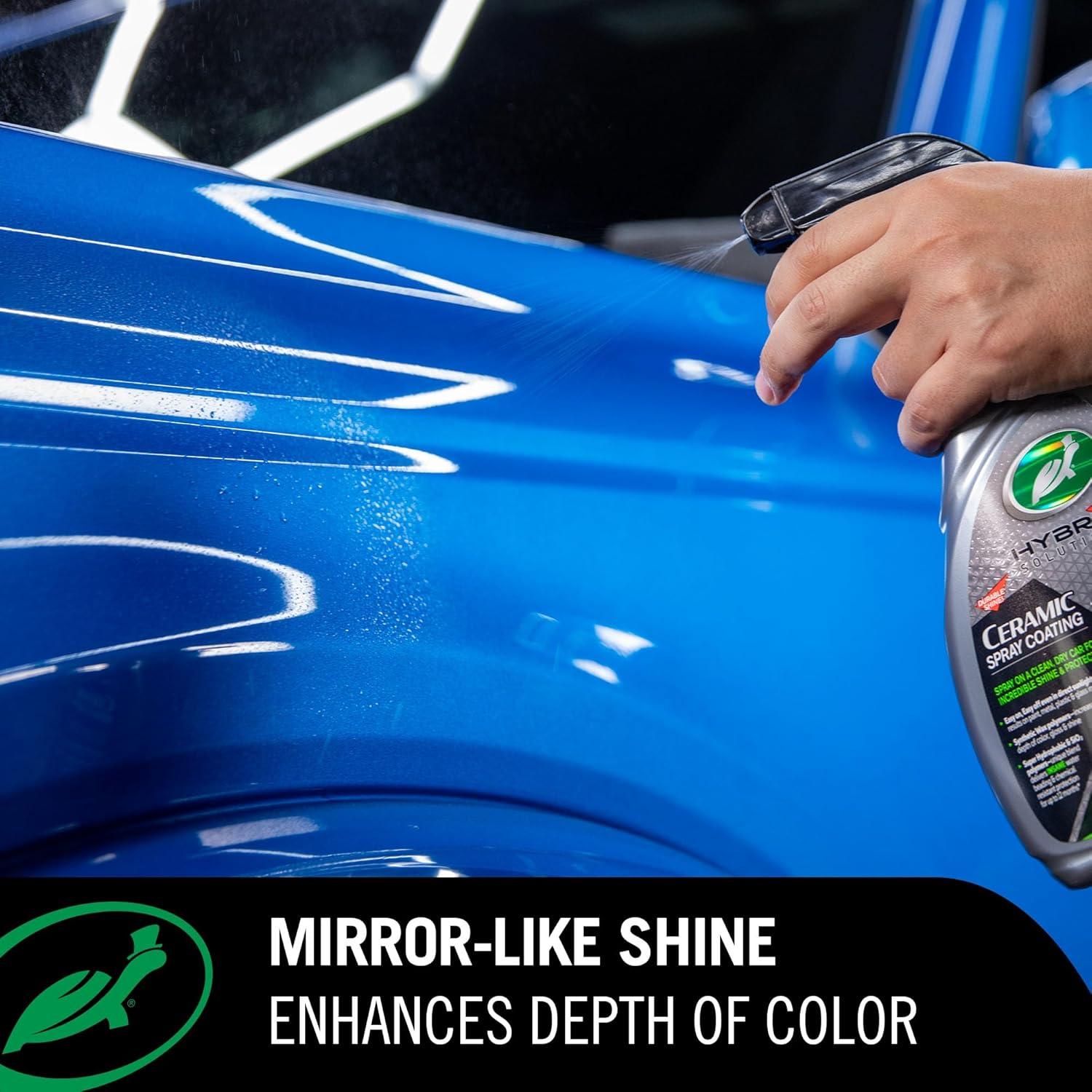Turtle Wax's Hybrid Solutions Ceramic Wax Coating is the ultimate method of long-lasting ceramic protection on your vehicle's surface. This easy to use product sprays on and wipes off with very little effort while delivering superior shine and gloss, while also delivering unmatched water repellency that will last a minimum of 6 months. Turtle Wax Hybrid Solutions Ceramic Wax Coating, when used even occasionally as part of your regular maintenance schedule, keeps your car exterior looking new and helps your car stay cleaner longer helping prevent dusty soils from re-depositing on exterior surfaces. With Hybrid Solutions Ceramic Wax Coating, car care has never been easier.