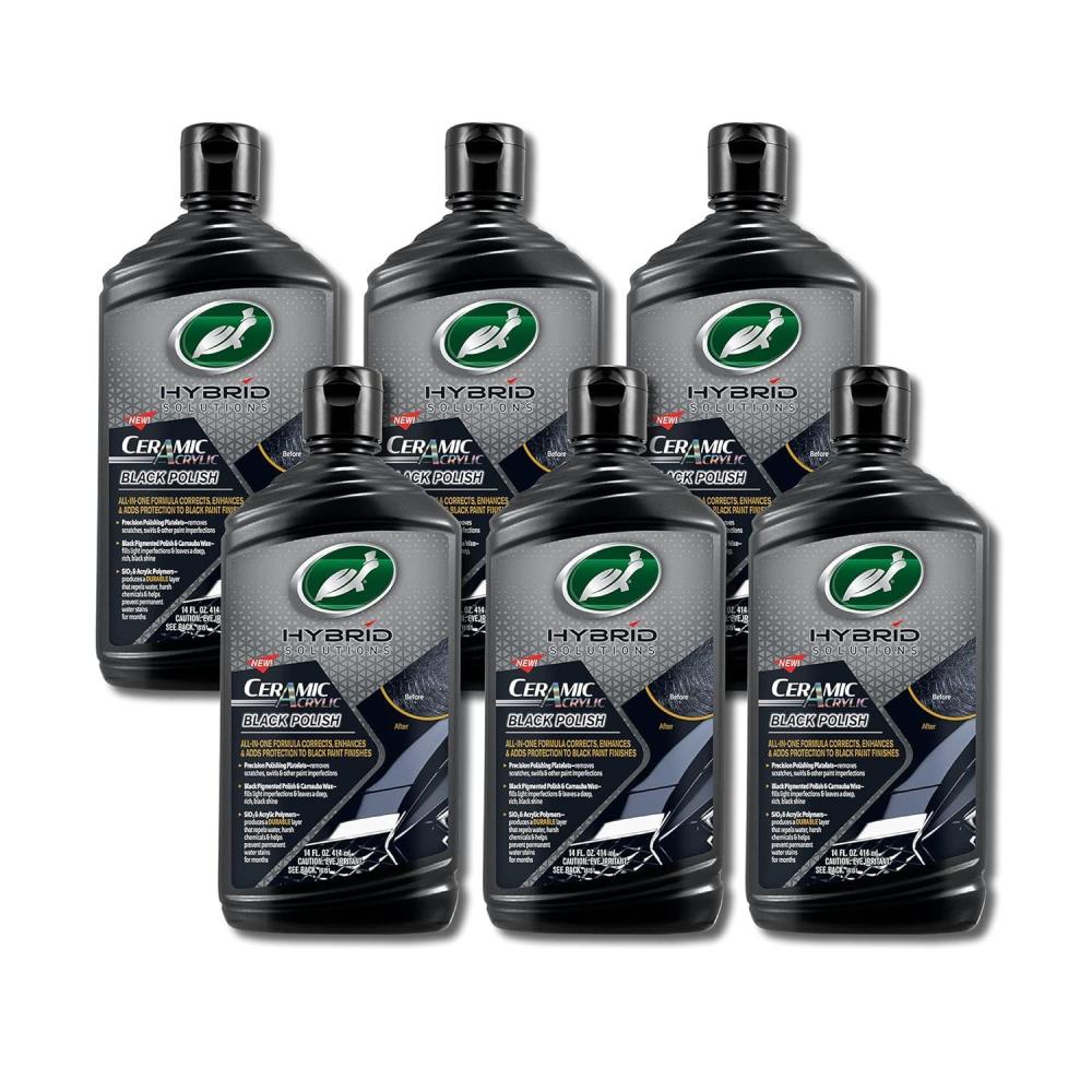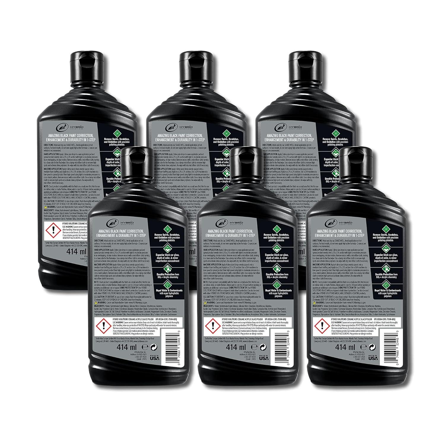 Turtle Wax 53448 Hybrid Solutions Ceramic Acrylic Black Polish and Wax Formulated for Black Car Paint, Removes Surface Scratches and Swirl Marks, Provides Water Repellency, 14 oz. (Pack of 1)(14 Fl Oz (Pack of 1))