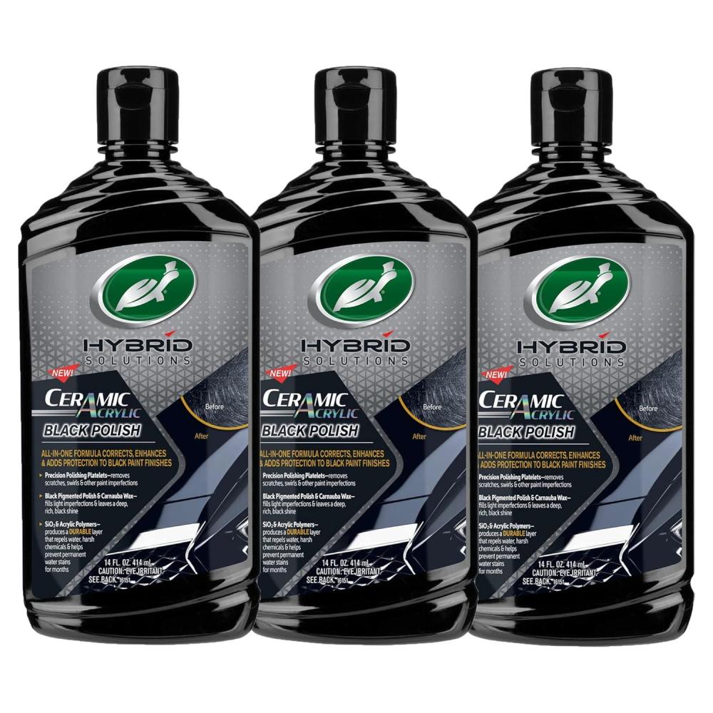 Turtle Wax 53448 Hybrid Solutions Ceramic Acrylic Black Polish and Wax Formulated for Black Car Paint, Removes Surface Scratches and Swirl Marks, Provides Water Repellency, 14 oz. (Pack of 1)(14 Ounce (Pack of 3))
